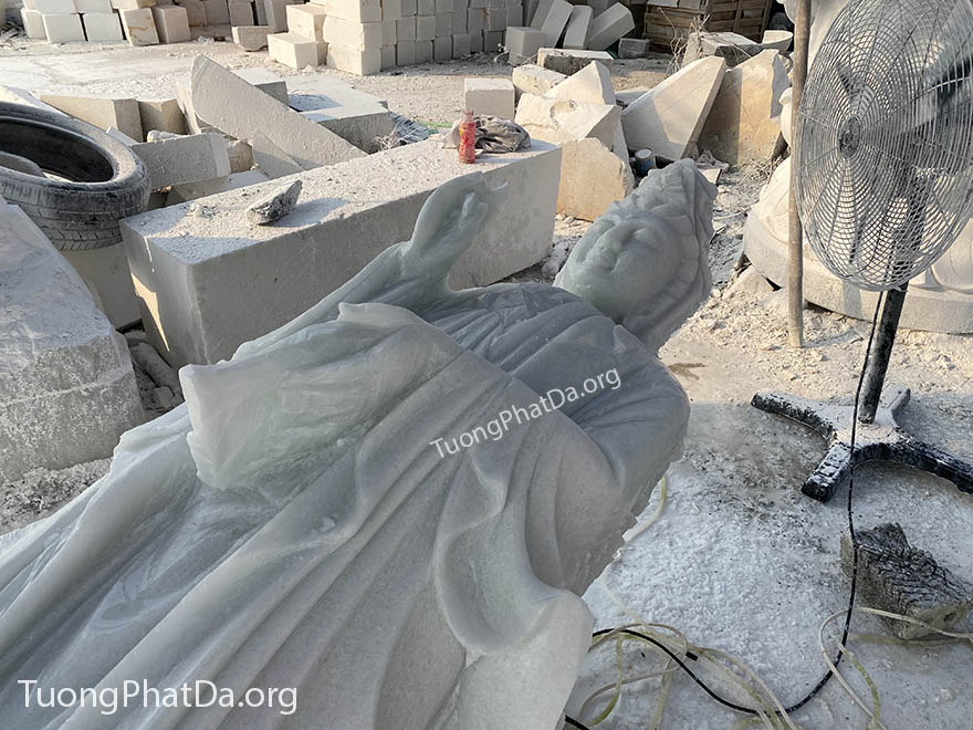 Hình Tượng Phật Quan Âm bằng đá đang trong giai đoạn vạc phôi chuẩn bị đi vào chi tiết