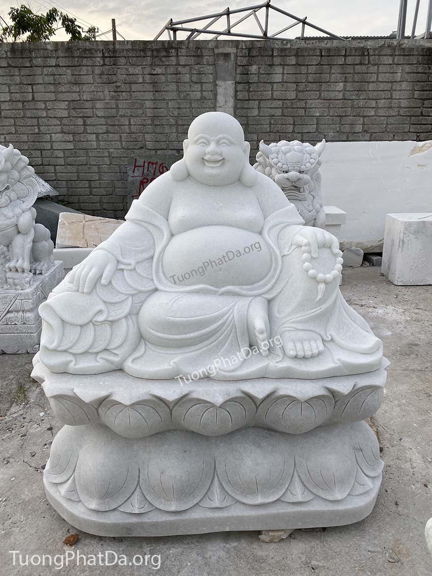 Tượng Phật Di Lặc bằng đá Cẩm thạch trắng trong xanh ngọc cao 80cm ngang 1,1m