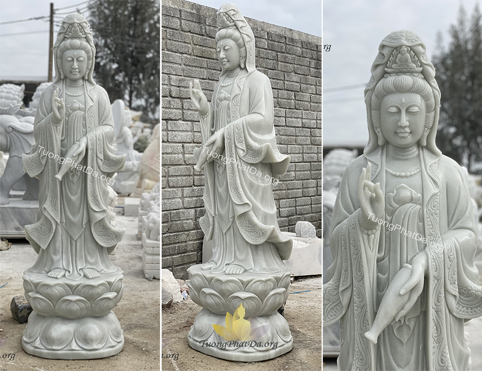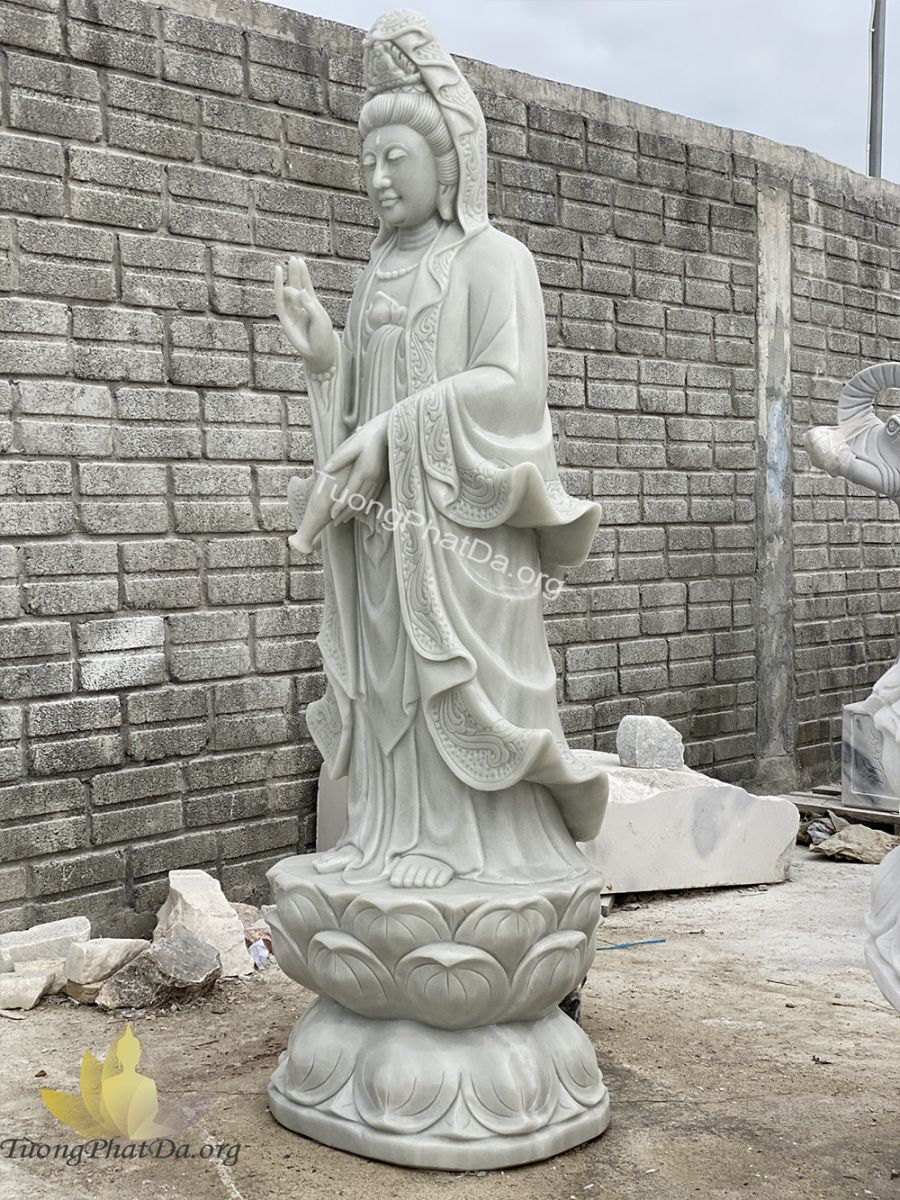 Tượng Quan Âm bằng đá trắng mịn tự nhiên được sản xuất trực tiếp tại cơ sở TuongPhatDa.org